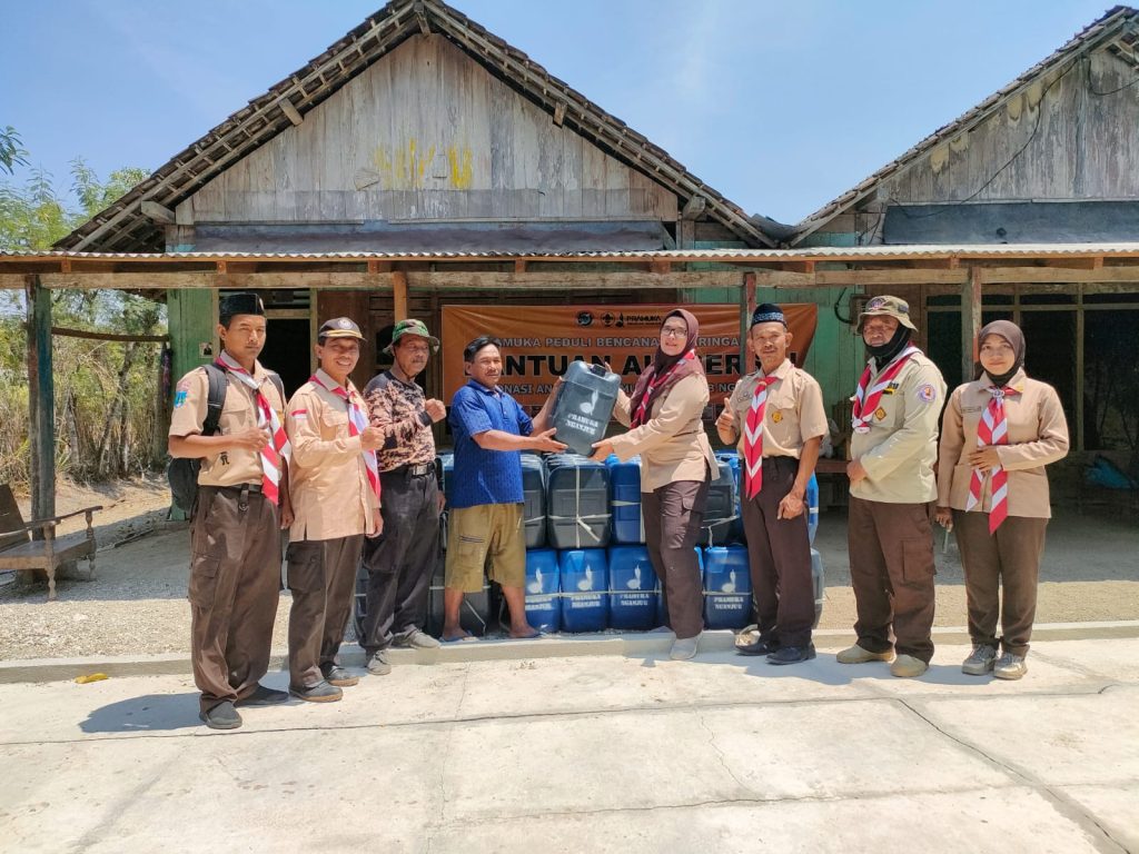Nganjuk – Kwartir Cabang Gerakan Pramuka Nganjuk melalui Brigade Penolong 13.18 Kwarcab Nganjuk melaksanakan Aksi Pramuka Peduli Kekeringan di wilayah Nganjuk.