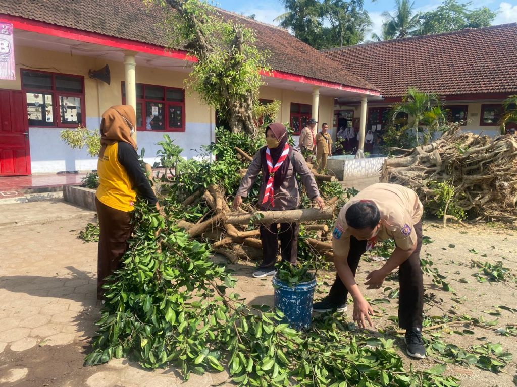 Rombongan kemudian bergerak ke Dusun Parirejo Desa Parijatah Wetan dan selanjutnya ke SDN 3 Wonosobo. Di lokasi, kolaborasi Pramuka, Pemerintah Desa dan Kecamatan, TNI, Polri, dan masyarakat setempat terlihat saat membersihkan sisa-sisa pohon tumbang dan merapikan bangunan yang rusak.