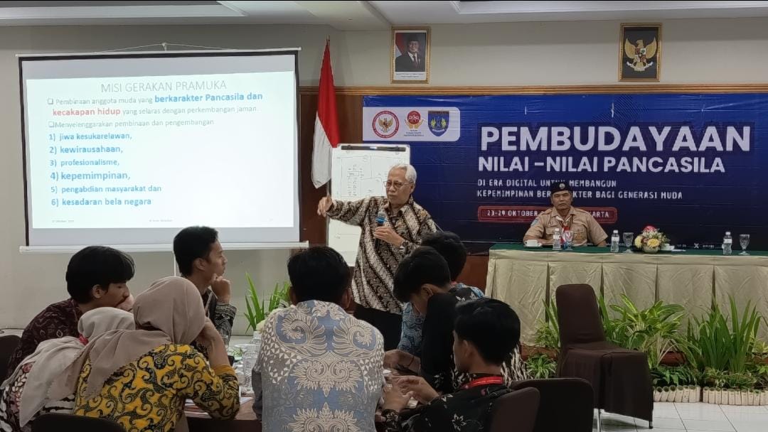 Yogyakarta, 25 Oktober 2025 – Pelatihan Pembudayaan Nilai-Nilai Pancasila di Era Digital menghadirkan tokoh kunci dalam bidang ideologi negara. Pada Sabtu (25/10), para peserta, termasuk enam delegasi Kwarda Jawa Timur, berkesempatan menyerap materi mendalam dari Kak Prof. Dr. M. Amin Abdullah, Dewan Pengarah Badan Pembinaan Ideologi Pancasila (BPIP) dan Purna Rektor UIN Sunan Kalijaga Yogyakarta.