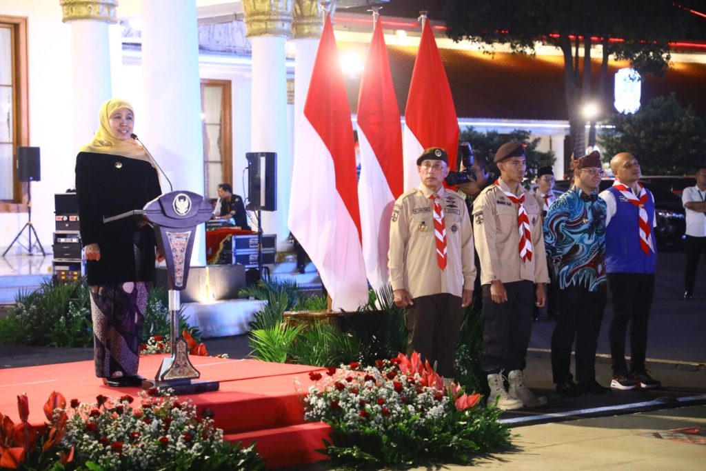 Sambutan dan apresiasi Kak Khofifah Indar Parawansa Gubernur Jawa Timur saat penyematan hasduk dan baret kepada Mario Aji sebagai Duta Pramuka Jawa Timur