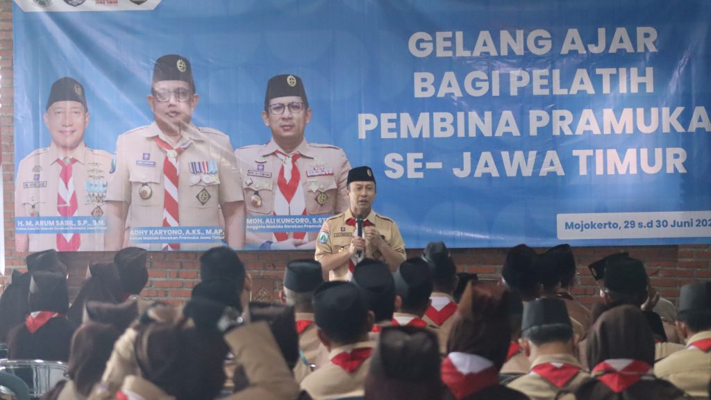 Mojokerto – Dalam rangka merumuskan metode pembinaan baru dalam mengembangkan pendidikan kepramukaan di Jawa Timur, Kwartir Daerah Gerakan Pramuka Jawa Timur menyelenggarakan kegiatan Gelang Ajar Pembina Pramuka Se-Jawa Timur pada 29-30/6/2024 bertempat di Narwastu Camping Ground Mojokerto.