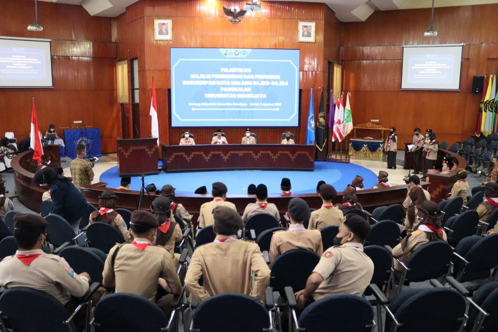 Malang – Pelantikan Majelis Pembimbing Gugusdepan dan Pengurus Gugusdepan Pangkalan Universitas Brawijaya oleh Ketua Kwarda Jatim, Kak H. M. Arum Sabil, SP., di Gedung Widyaloka Universitas Brawijaya pada Jumat (5/8/2022) berlangsung dengan lancar, tertib dan khidmat.