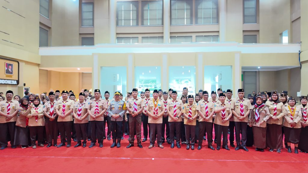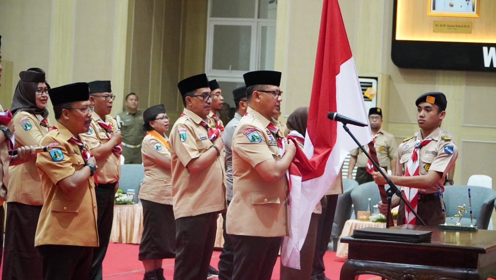 Kota Batu – Ketua Kwartir Daerah Gerakan Pramuka Jawa Timur Kak H. M. Arum Sabil, S.P., S.H. resmi melantik Penjabat Wali Kota Batu Kak Dr. Aries Agung Paewai, S.STP., MM. sebagai Ketua Majelis Pembimbing Cabang Gerakan Pramuka Kota Batu Masa Bakti 2023-2025 pada Selasa, 18 Februari 2025 di Graha Pancasila Balai Kota Among Tani, Kota Batu.