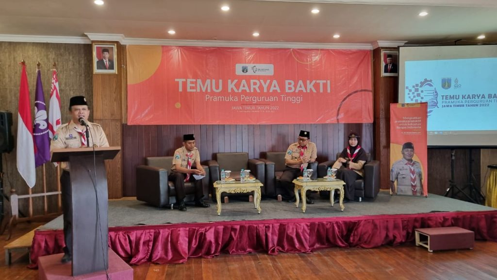 Trawas – Puluhan Anggota Pandega Racana Gerakan Pramuka dari Perguruan Tinggi se Jawa Timur mengikuti Temu Karya Bakti Pramuka Perguruan Tinggi tahun 2022. Kegiatan ini merupakan pertemuan yang bertujuan untuk memupuk rasa persaudaraan dan bakti para pandega racana di perguruan tinggi.