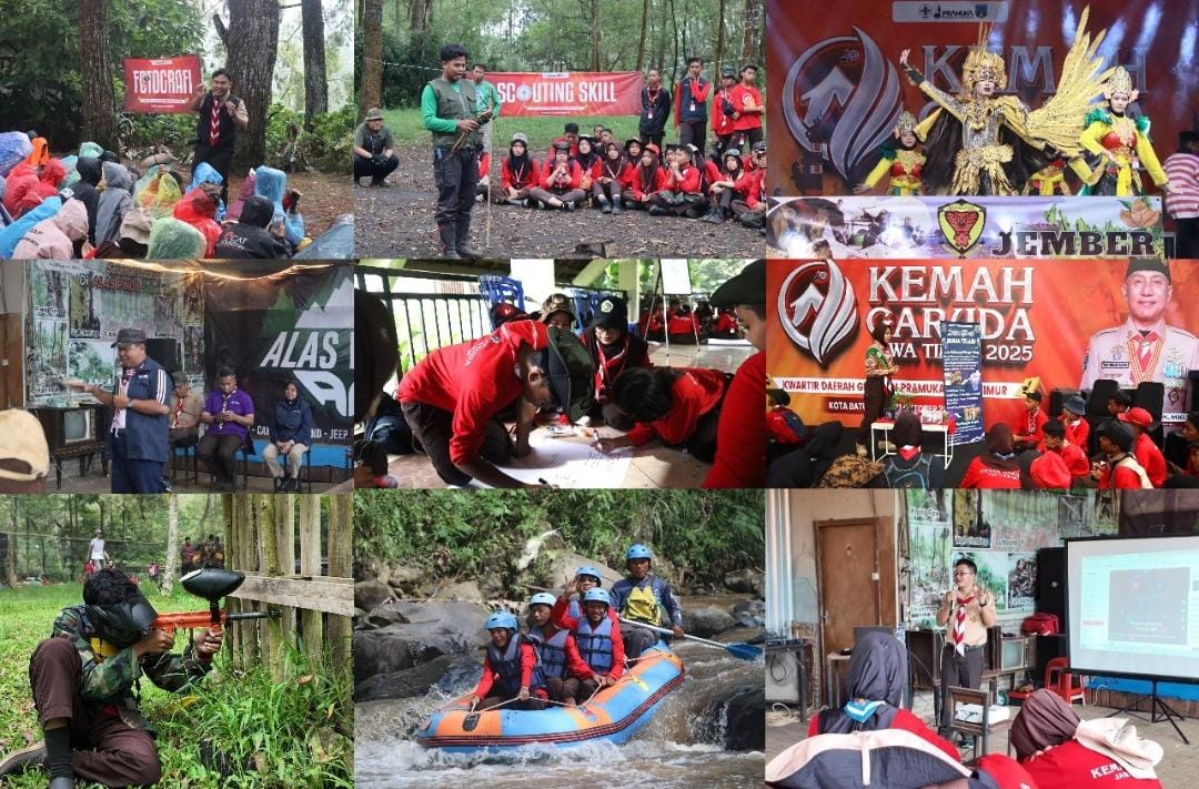 Kota Batu – Kwartir Daerah Gerakan Pramuka Jawa Timur menyelenggarakan kegiatan Kemah Garuda Jawa Timur 2025 pada 28 s.d. 31 Oktober 2025 di Bumi Perkemahan Coban Talun Kota Batu. Kegiatan ini diikuti 400 anggota Pramuka Penggalang Garuda dan Pramuka Penegak Garuda se Jawa Timur, beserta Pembina Pendamping.Kemah Garuda Jawa Timur 2025 dibuka oleh Kak Endang Soelistyowati, S.ST., S.Pd., M.Kes Wakil Ketua Bidang Anggota Muda Kwartir Daerah Gerakan Pramuka Jawa Timur ditandai dengan menekan tombol sirine, didampingi Kak Dr. Basuki Babussalam, SH., MH., Kak Dr. Zamzami Sabiq Hamid, M.Psi., beserta Pimpinan dan Perwakilan Dispora Jatim.