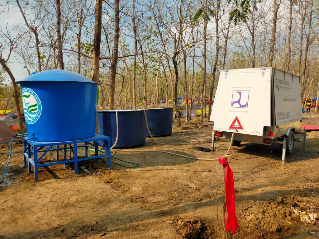 Instalasi Pengolah Air Mobil dari Kementian PUPR bertugas mengolah air sumber agar dapat diminum langsung oleh seluruh peserta Jambore