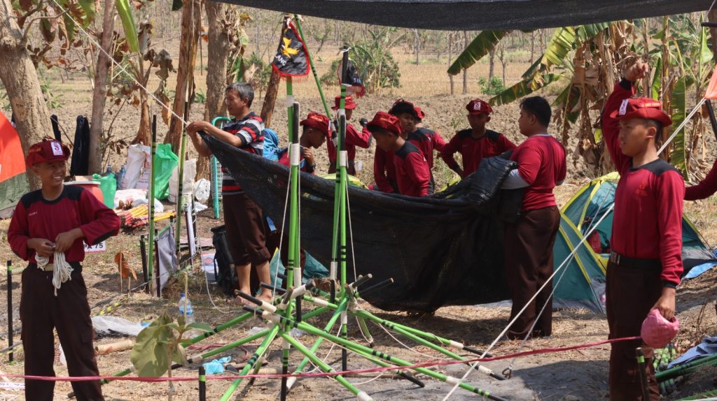 Mereka langsung mendirikan tenda dan menyiapkan kegiatan selama sepekan di Buper Ngawun Abilowo Tuban, dengan kerjasama tim akhirnya tenda berdiri dengan cepat dan nyaman untuk ditempati.
