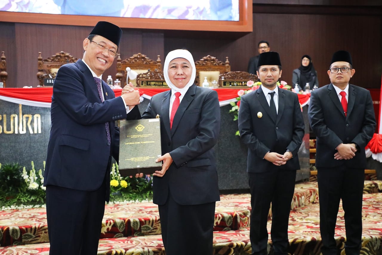 Opini WTP tersebut diberikan oleh Anggota V BPK RI Ahmadi Noor Supit kepada Gubernur Jawa Timur Khofifah Indar Parawansa dan Ketua DPRD Jatim Kusnadi di hadapan seluruh anggota DPRD pada Sidang Paripurna di Gedung DPRD Prov. Jatim Jl. Indrapura Surabaya, Selasa (30/5) pagi.
