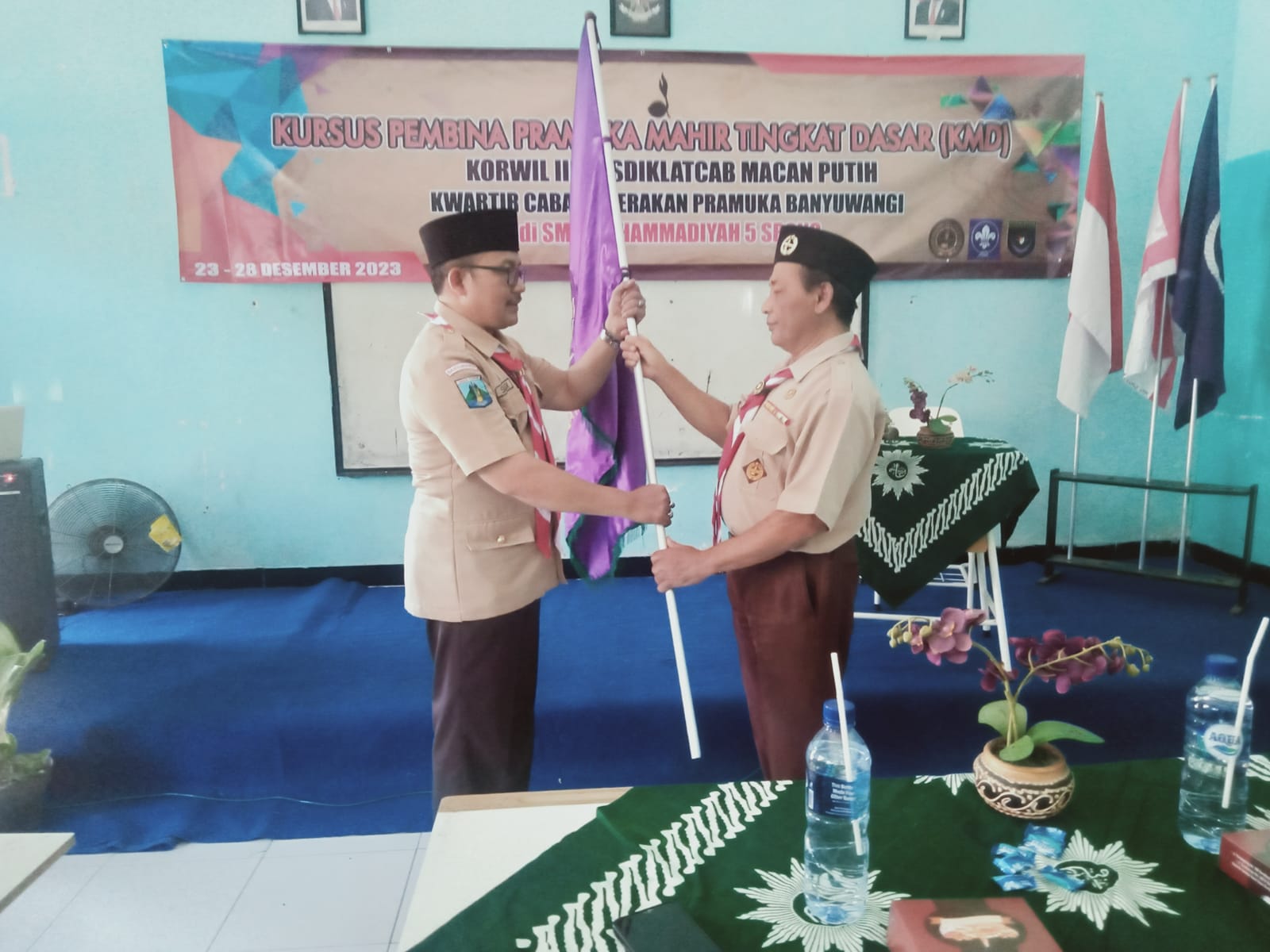 Banyuwangi – Pusat Pendidikan dan Pelatihan Kepramukaan Tingkat Cabang (Pusdiklatcab) Macan Putih Banyuwangi menyelenggarakan Kursus Pembina Pramuka Mahir Tingkat Dasar (KMD) pada tanggal 23-28 Desember 2023 di Gedung SMK Muhammadiyah 5 Srono.