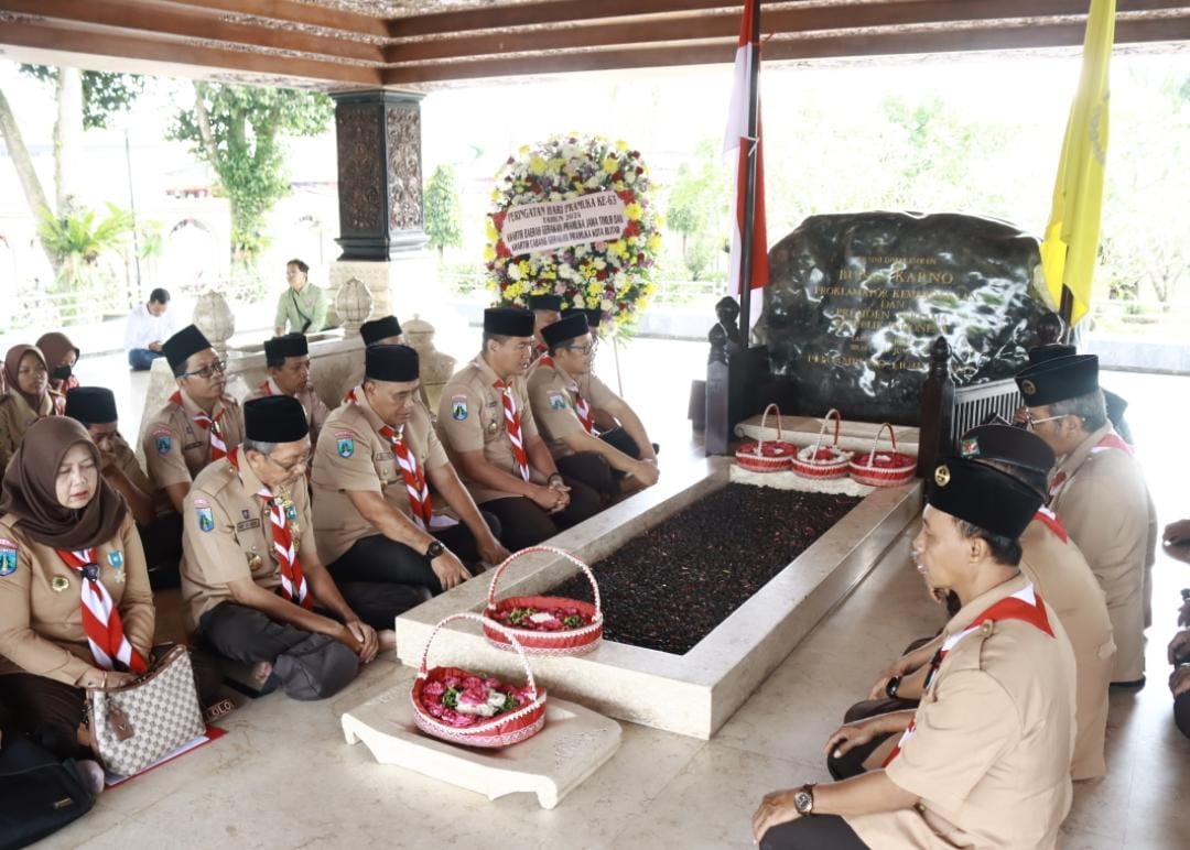 Acara ziarah dipimpin oleh Ketua Harian Kwarcab Kota Blitar Kak Moh. Sidiq, S.H., M.AP., yang diawali dengan prosesi penghormatan kepada arwah para Pahlawan Bangsa Indonesia dan tokoh Gerakan Pramuka yang telah gugur, khususnya Sang Proklamator Ir. H. Soekarno dan dilanjutkan doa bersama.